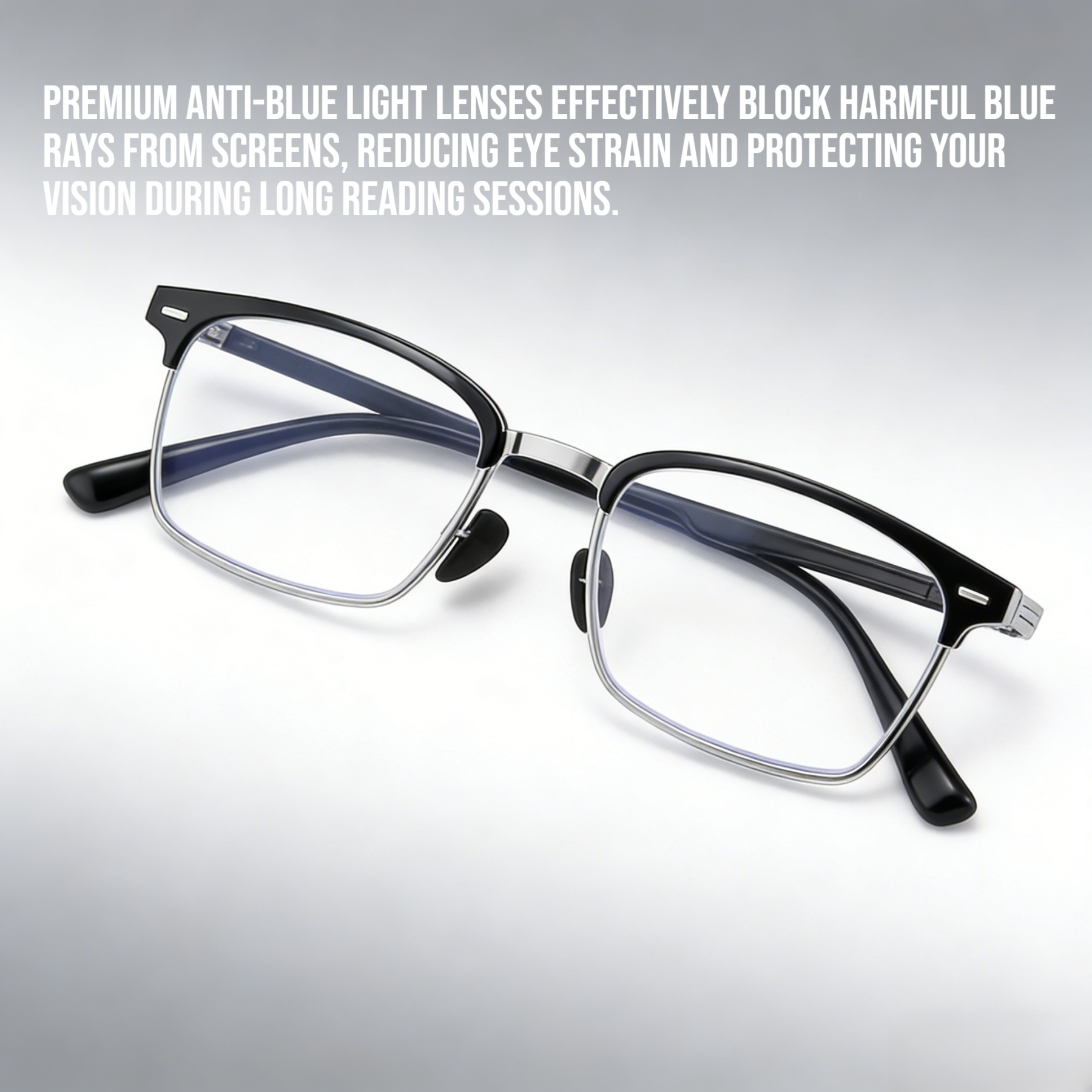 ● Premium anti-blue light lenses effectively block harmful blue rays from screens, reducing eye strain and protecting your vision during long reading sessions.